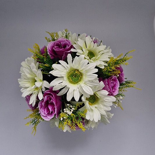 Artificial/Silk flower Memorial Arrangement Rosebud & Gerbera Purple