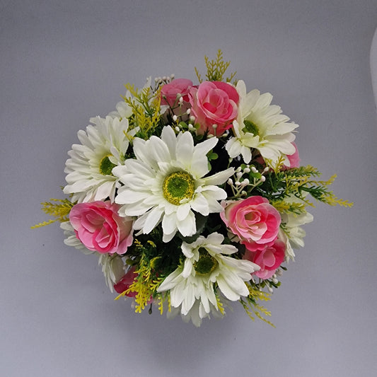 Artificial/Silk flower Memorial Arrangement Rosebud & Gerbera Pink