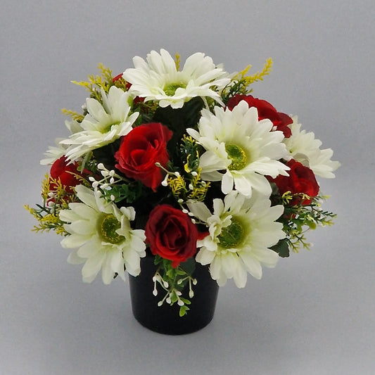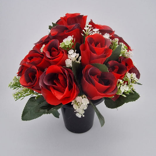 Artificial Silk flower Grave Arrangement in Memorial Crem pot - 24 Rose Heads