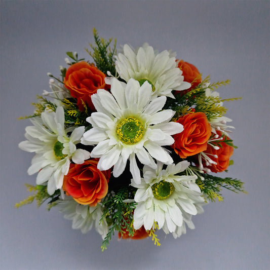Artificial/Silk flower Memorial Arrangement Rosebud & Gerbera Orange