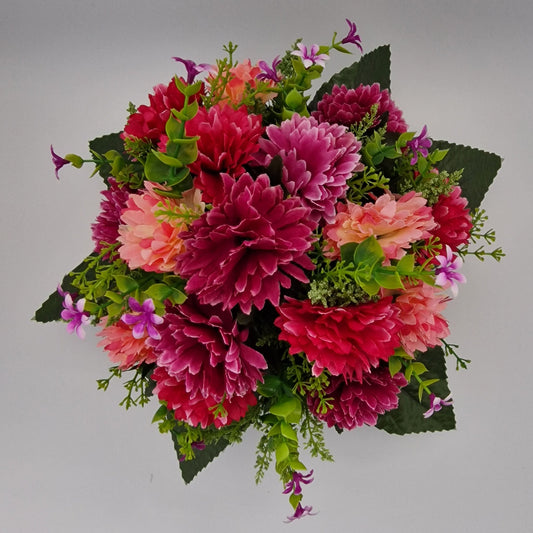 Spikey Chrysanthemum with Foliage Memorial Pot/ Grave Vase In 5 Different Colours