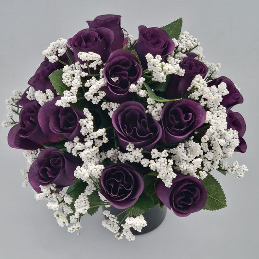Beautiful Rose Bud & Gypsophila Arrangement Artificial Flower Pot for Grave in Purple