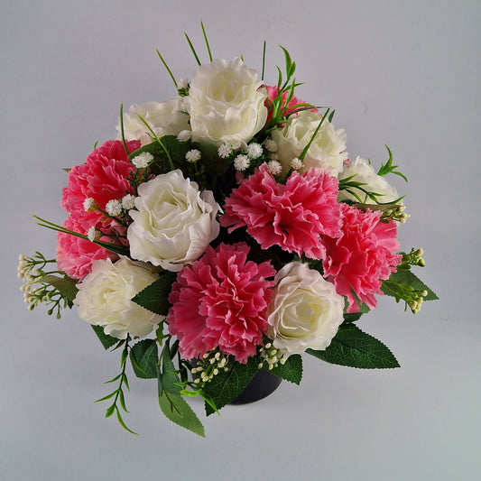 Grave Pot With Artificial Crinkle Rose an Carnation Memorial Pot- Pink & White