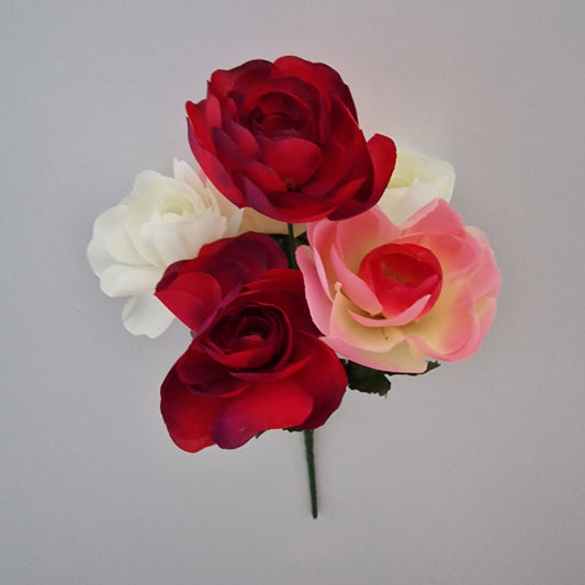 Artificial Silk Flower Arrangement Red And Ivory Crinkle Rose Bud Mix Grave Pot. Memorial Tribute